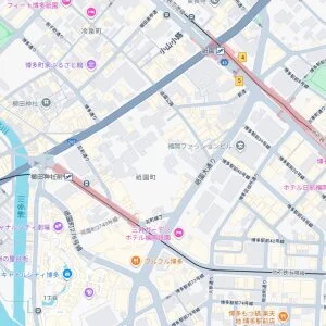 最寄り駅「祇園」の 祇園駅もしくはキャナルシティー付近にて